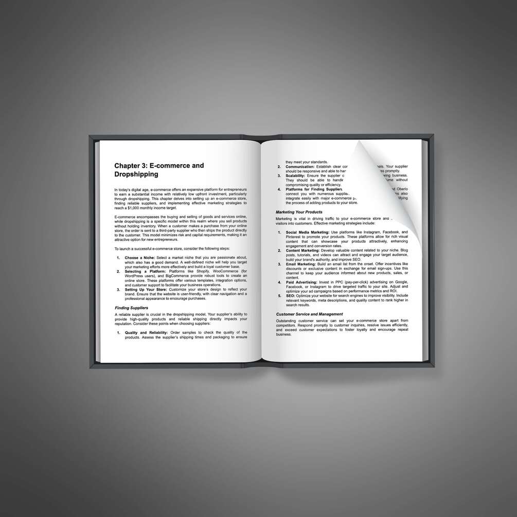 Detailed E-Book: Our e-book is a complete guide that covers everything you need to know about building additional income streams. With 10 in-depth chapters, you'll explore a wide range of opportunities:
